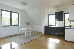 Penthouse-Wohnung in einem 3-Einheiten-Gebäude mit 4 Schlafzimmern, einem geräumigen Wohnzimmer, einem privaten 145 m² großen Garten und einer 16 m² großen Terrasse. Moderne Wohnung mit elektrischen Fensterläden, großartige grüne Umgebung, frische Luft und immer noch in der Nähe der Stadt.