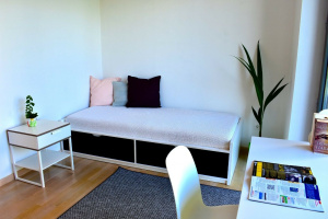 moderne Isolierung hält die Wohnung im Sommer kühl und warm im Winter. Die Wohnungen sind für Privatsphäre gestapelt.