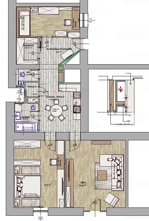 In den 1940er Jahren erbaut, verfügt das vierstöckige Gebäude über 31 Apartments und Geschäfte. Die Wohnung befindet sich im obersten Stockwerk (3. Level) und verfügt über einen Aufzug. Das Dach wurde kürzlich renoviert, mit einer monatlichen Wartungsgebühr von rund 30.000 HUF.