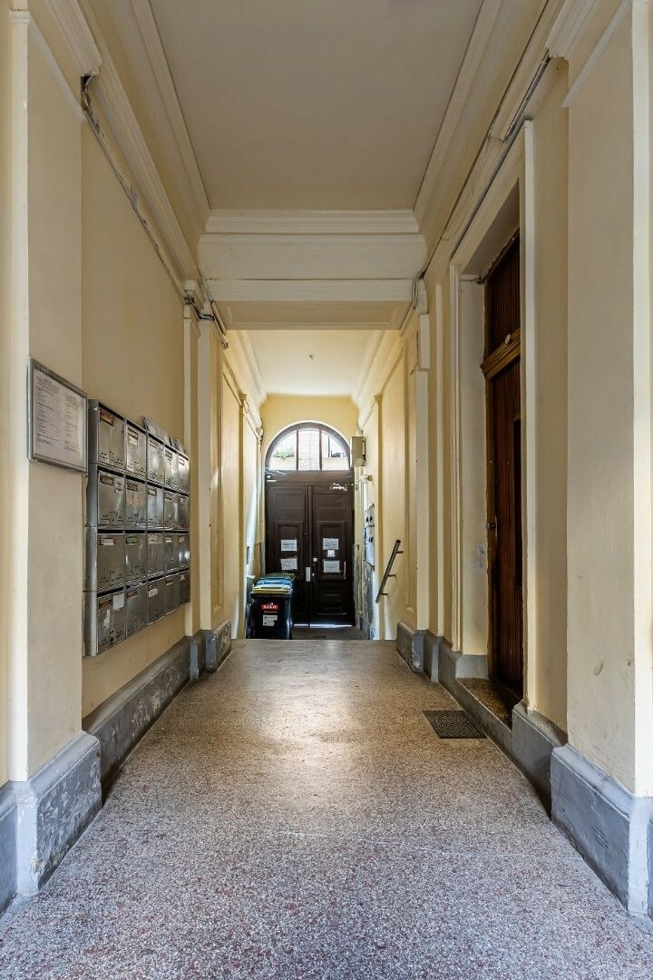 befindet sich in einem patinierten Gebäude mit einer unverwechselbaren Ziegelfassade ist seit der Jahrhundertwende stolz aufgestanden. Das Gebäude verfügt über eine kleine, ruhige Gemeinschaft mit einem klassischen Layout im Innenhofstil, und im zweiten Stock steht eine elegante, geräumige Wohnung jetzt zum Verkauf.