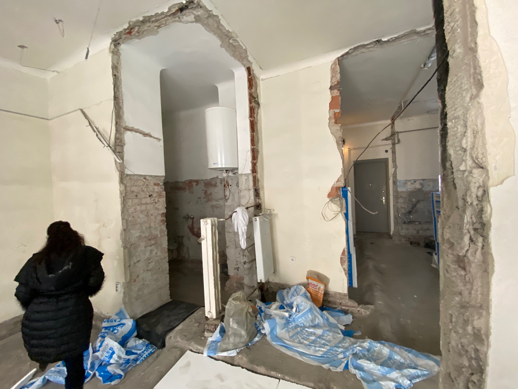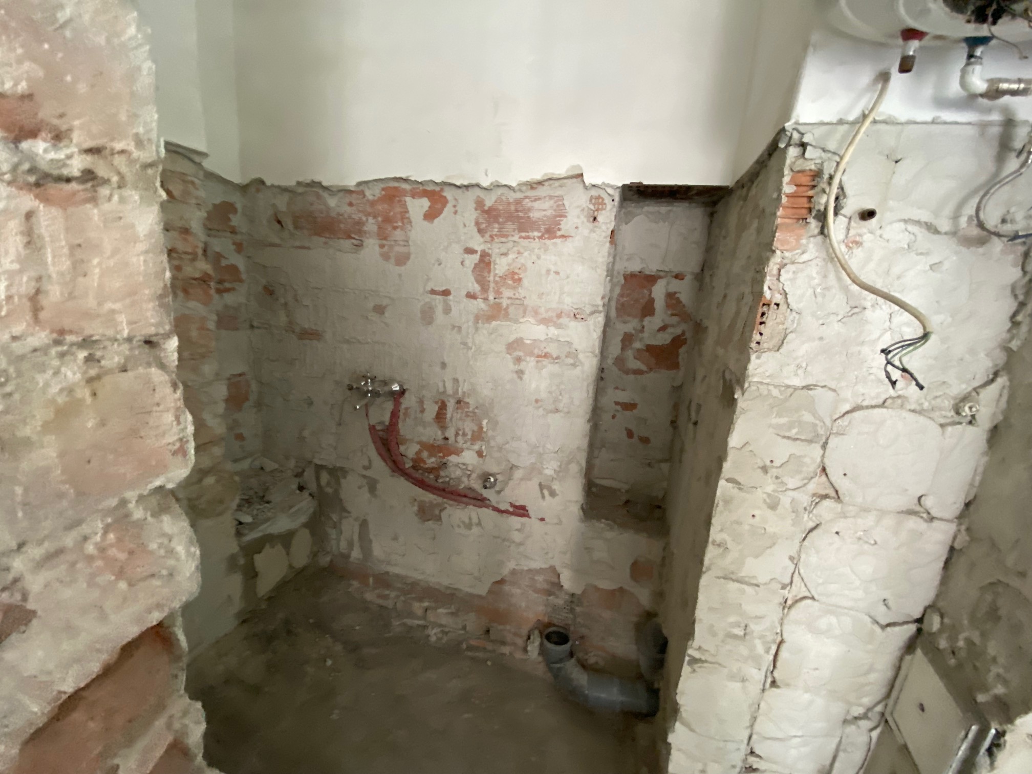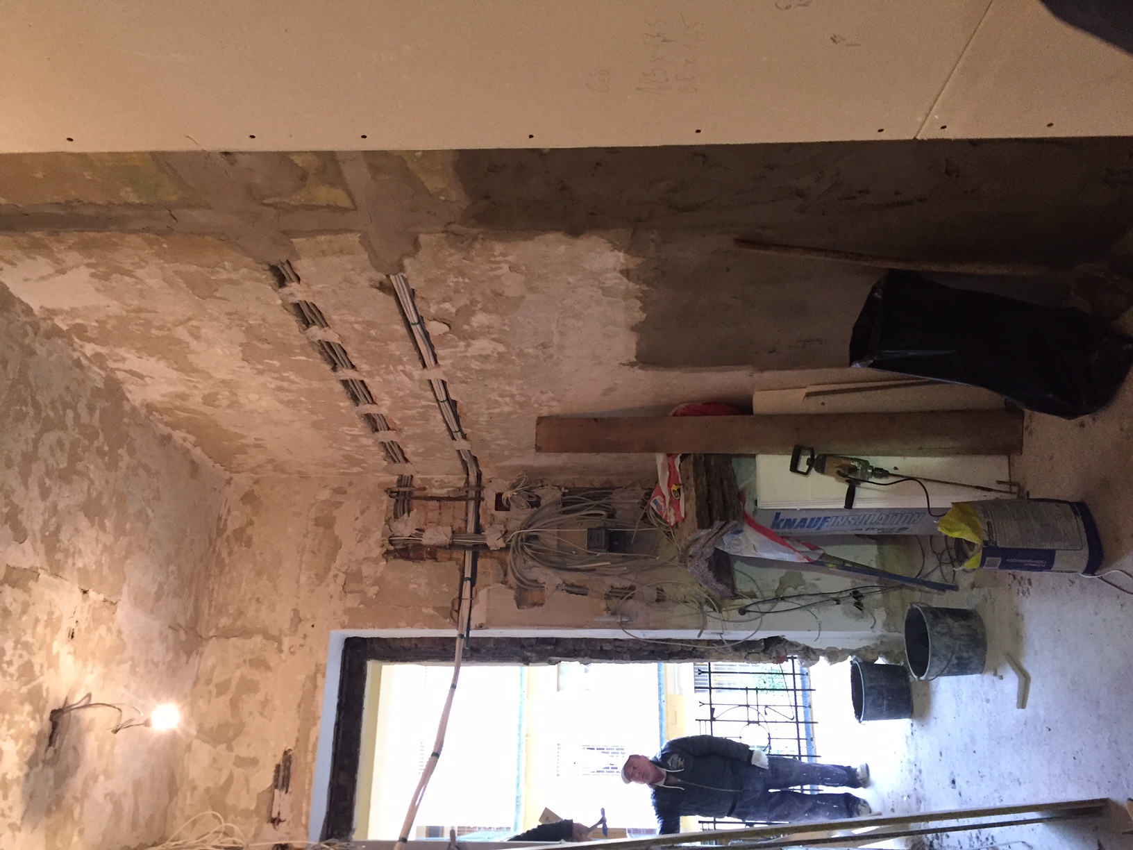 As the photos show, the renovation of this apartment required stripping it down to the bare walls. Virtually all the water, gas, and electrical wiring had to be reconsidered and redone.