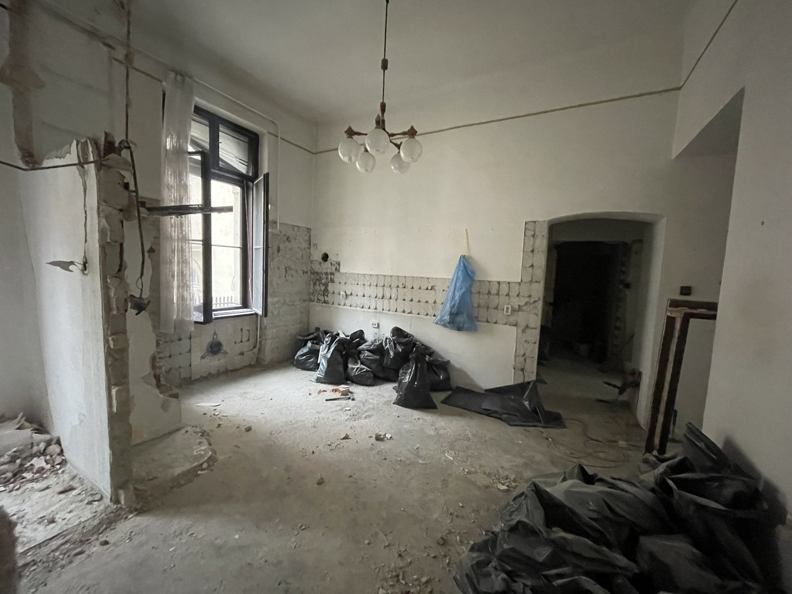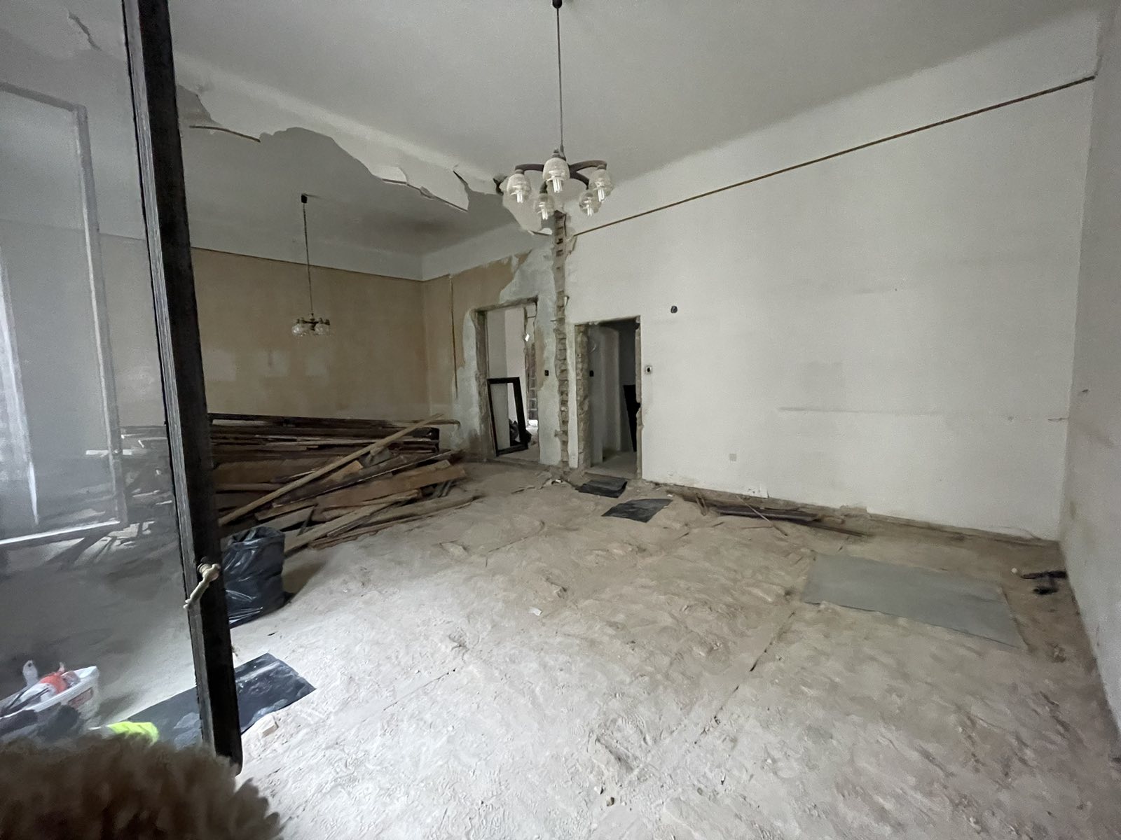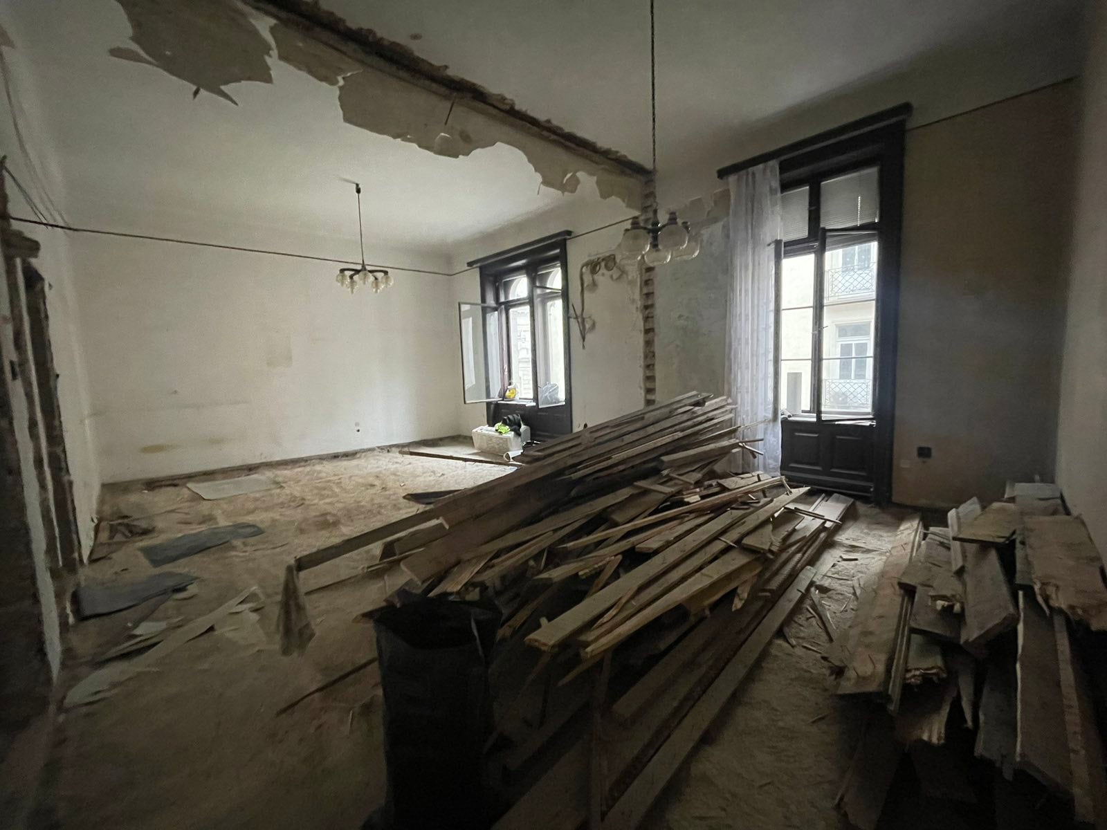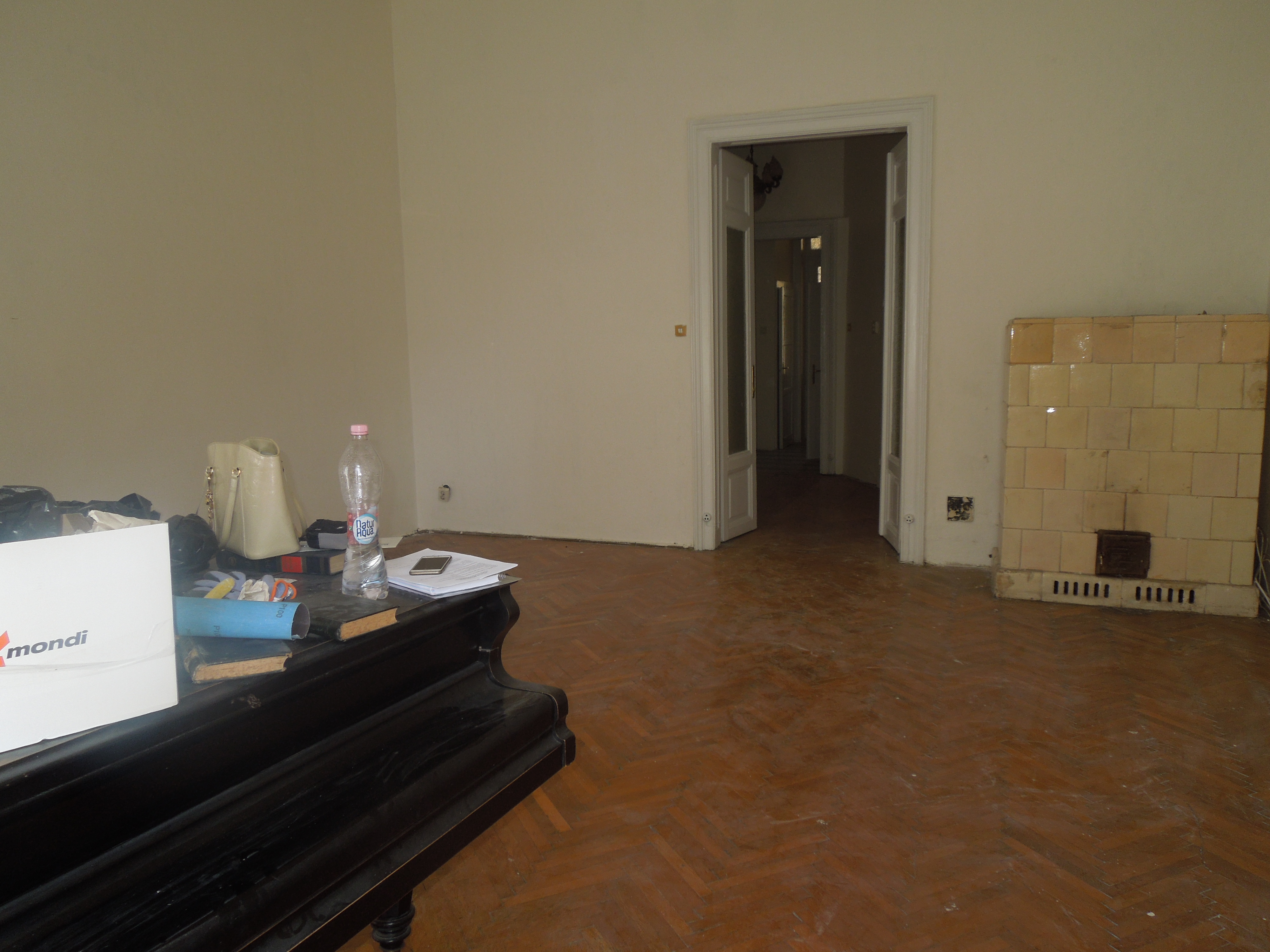 We would have loved to restore the very dilapidated piano found in the apartment. Unfortunately, it had to go, as did the hundred-year-old oak parquet flooring beneath it, whose warping resembled a roller coaster in an amusement park.
