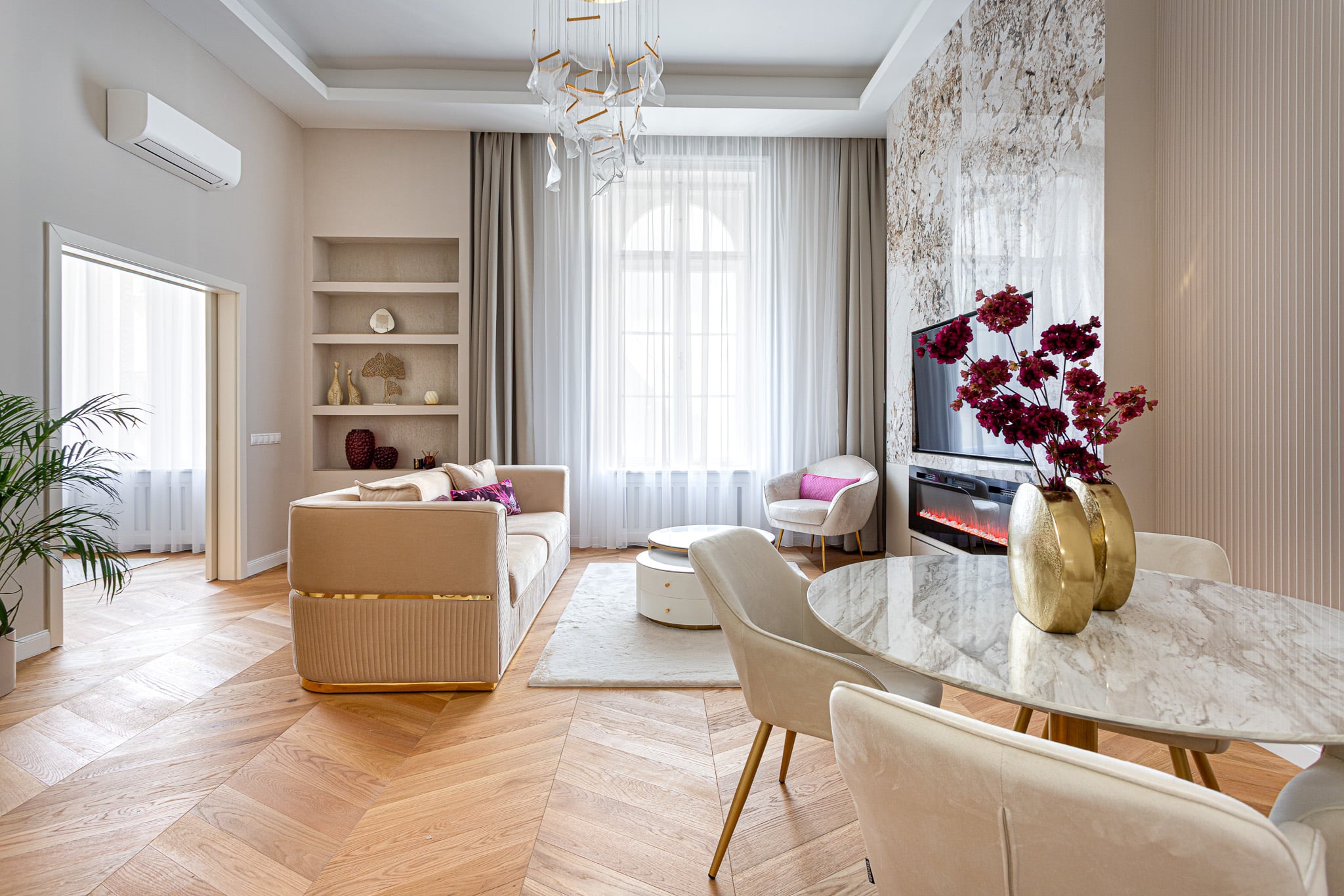 The kitchen and bathroom were completely redesigned with sleek, minimalist designs to enhance functionality and aesthetics.