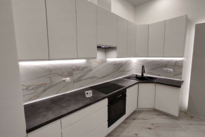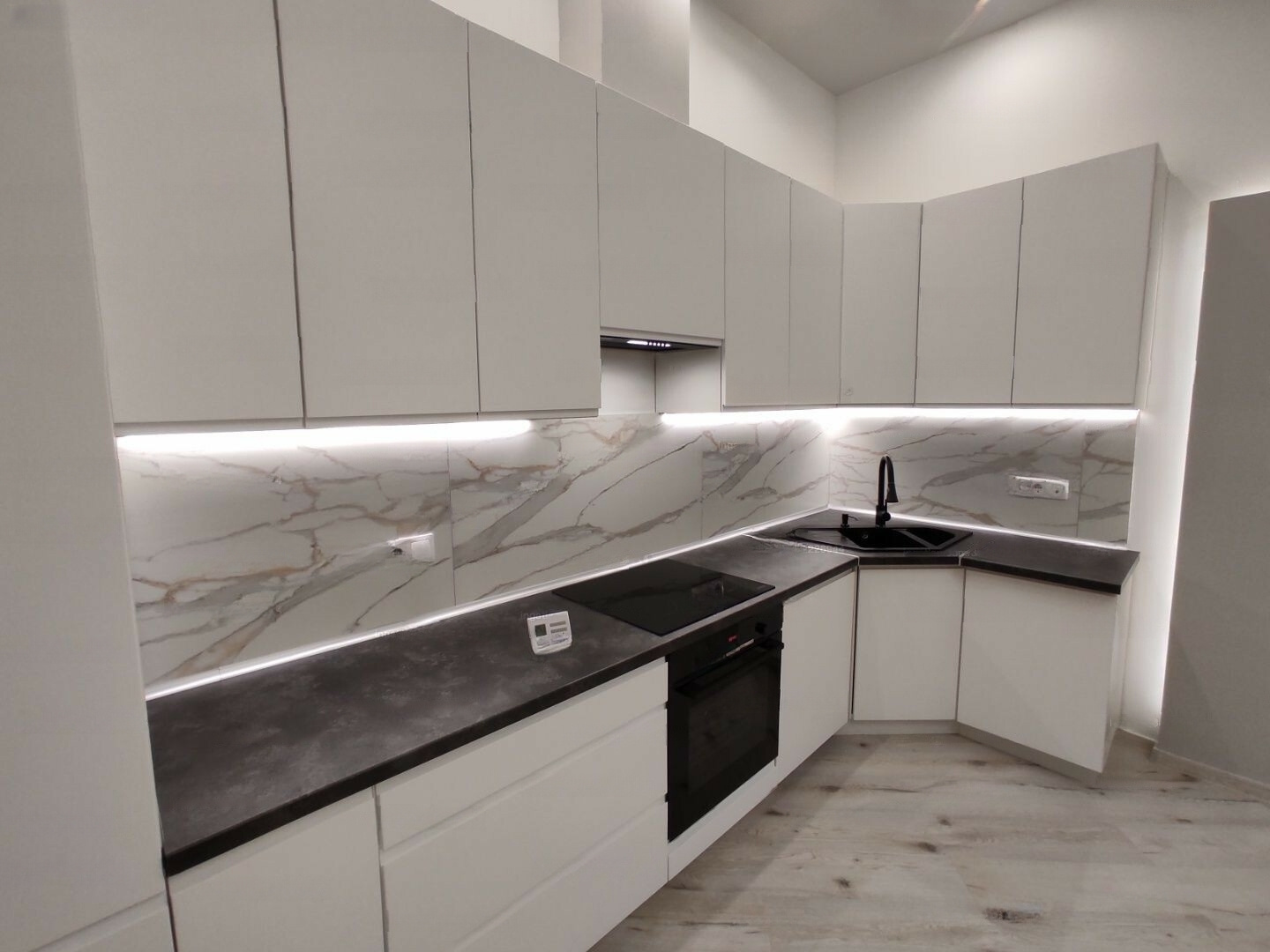 The new kitchen will be equipped with an induction hob, oven, high-performance quiet extractor fan, dishwasher, built-in refrigerator, and an additional washing machine in the bathroom.