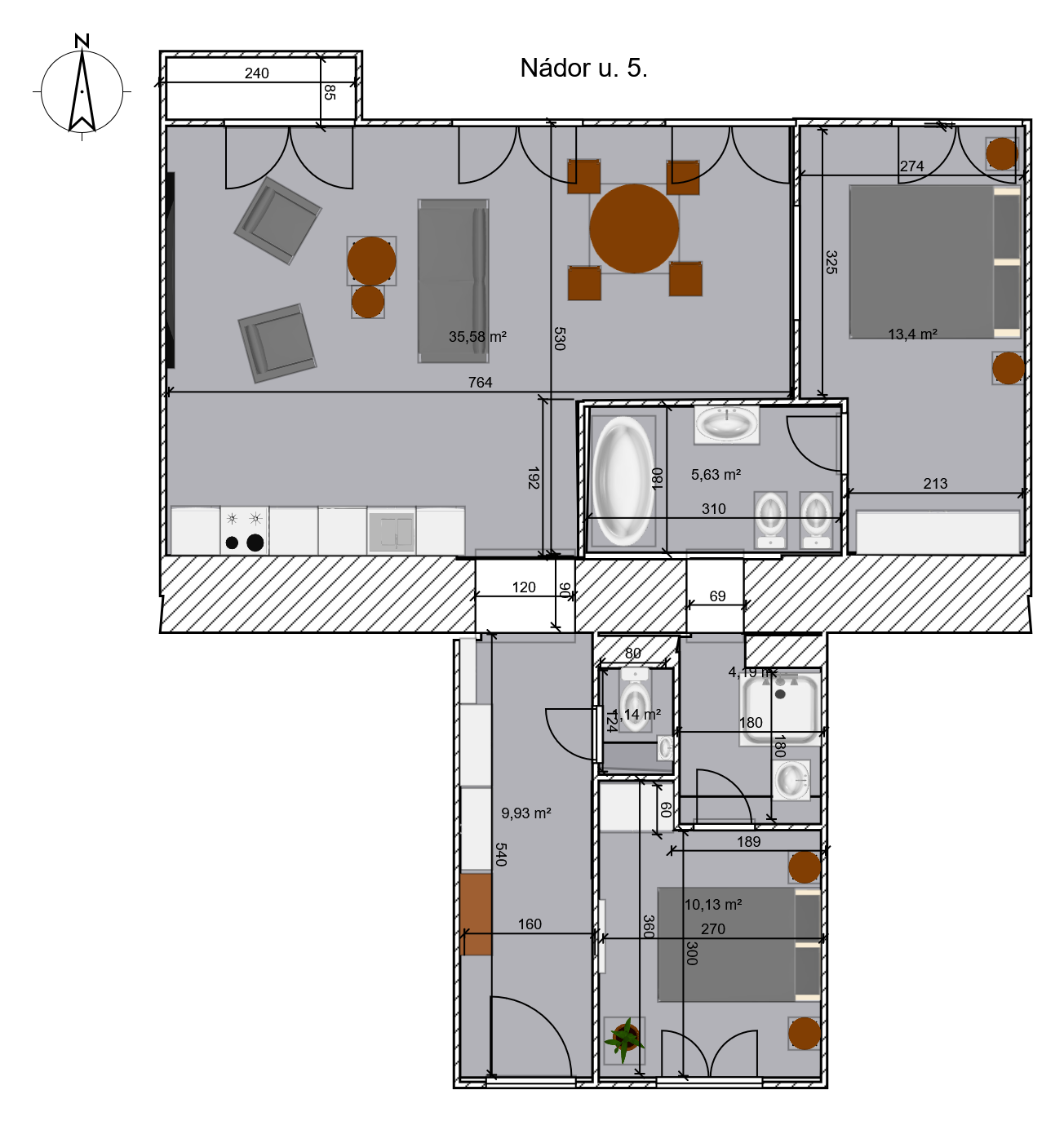 La cuisine est entièrement mécanisée avec des marques AEG: lave-vaisselle, congélateur de réfrigérateur, four, plaques de cuisson, capot de vapeur et machine à laver. Le confort de la propriété est fourni par trois climatisation et un assombrissement automatique. Le chauffage est le centre du chauffage, le coût commun du coût commun est de 33.104 HUF par mois.