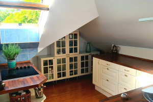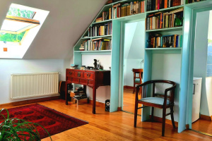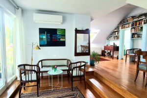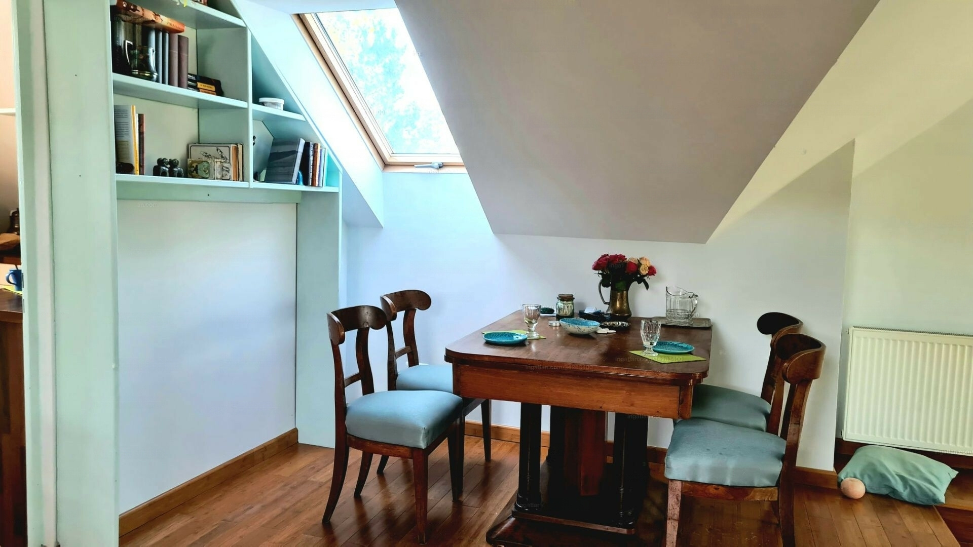 romantisk vindlägenhet i Pasarét, belägen i en liten byggnad av Bauhaus-stil.