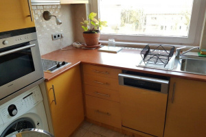 I närheten hittar du Daubner konfekt, en skola, dagis och en busshållplats bara en minut från huset, vilket gör det enkelt att nå centrum i alla riktningar. Det finns också en stor trädgård bakom byggnaden.