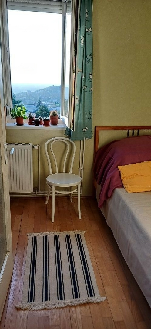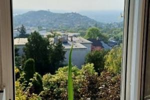Denna 2: a våning, sydostläge lägenhet erbjuder panoramautsikt i en lugn, 9-enhetsbyggnad från 1970-talet på toppen av Mártonhegy.