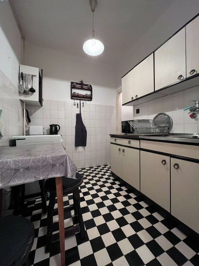 Die Wohnung umfasst eine Eingangshalle, eine separate Küche, eine Speisekammer, das Bad mit Toilette, einen Essbereich/eine Halle, ein Wohnzimmer und ein Schlafzimmer mit Zugang zum Balkon. Die Heizung wird durch Gaskonvektor bereitgestellt, und die Versorgungskosten liegen innerhalb der subventionierten Strom- und Gasgrenzen. Plastikfenster mit guter Isolierung wurden installiert.