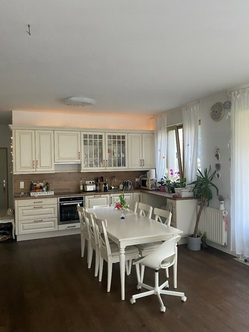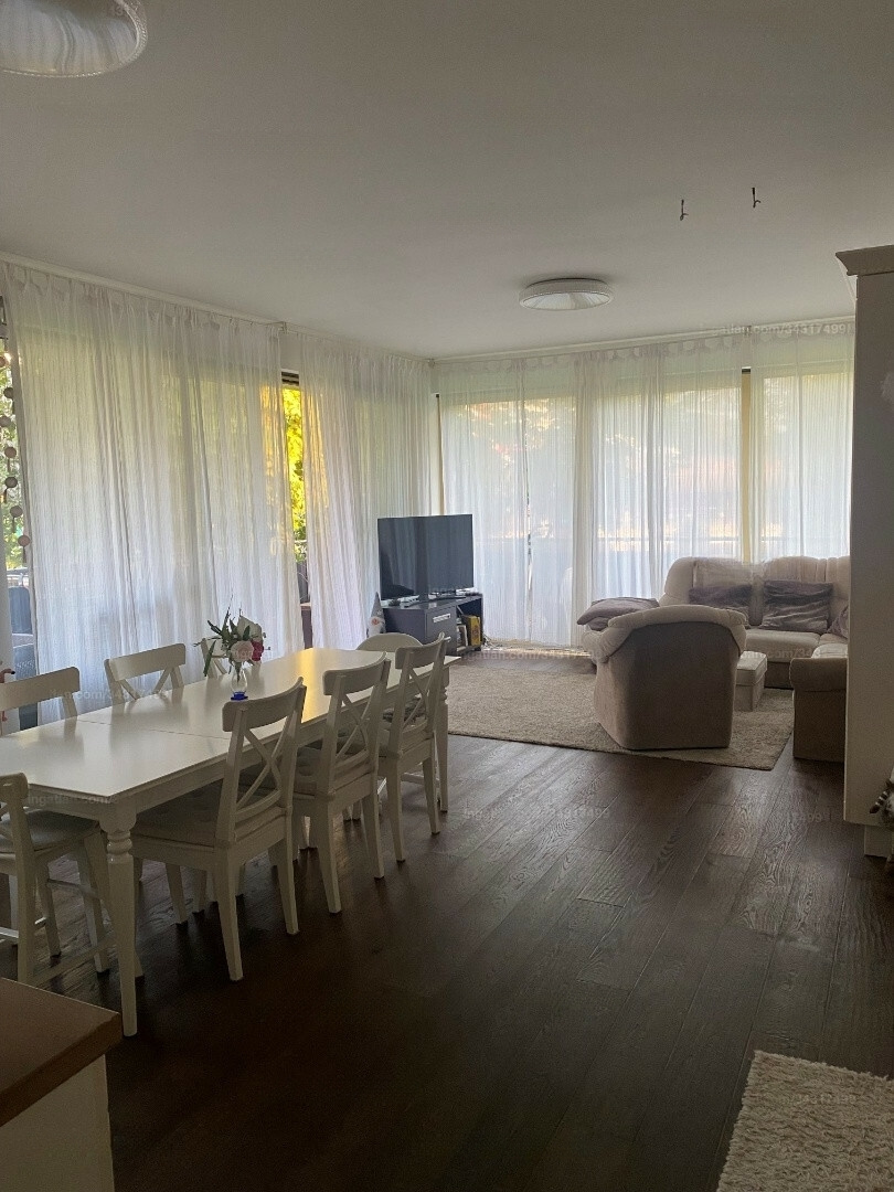 The apartment includes a living room and 4 bedrooms, 2 bathrooms (each with a toilet), a separate WC, and a 20-square-meter private terrace. It is on the elevated ground floor, with views of the garden, Józsefhegyi Street, and Pusztaszeri Street. The living room faces west and north, while the bedrooms face west, north, east, and northeast.