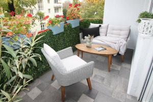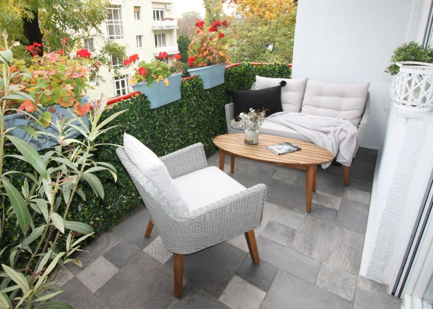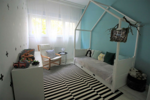 This Bauhaus-style building with 7 apartments was built in 1942 and renovated in 2022. It has a refreshed façade, new wiring, and a well-maintained green garden with a children's play area. Secure entry is provided through an intercom system.