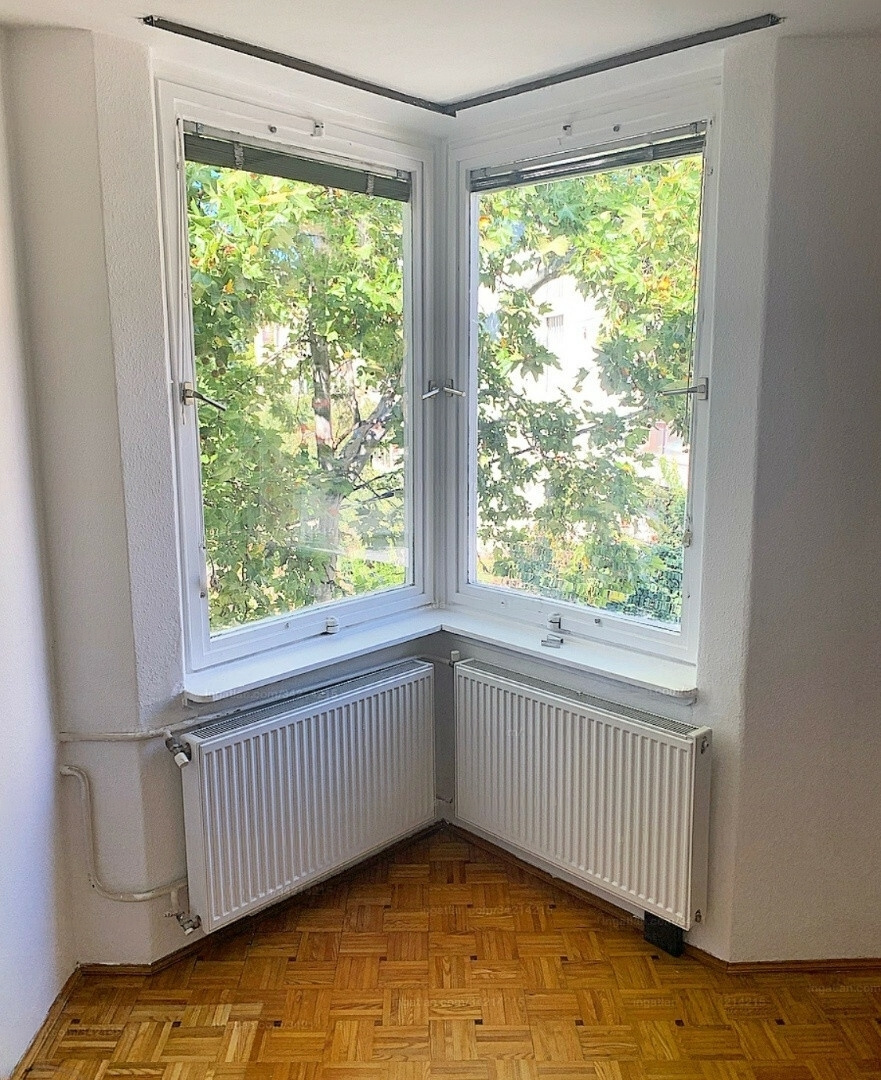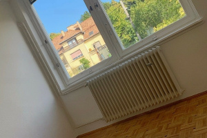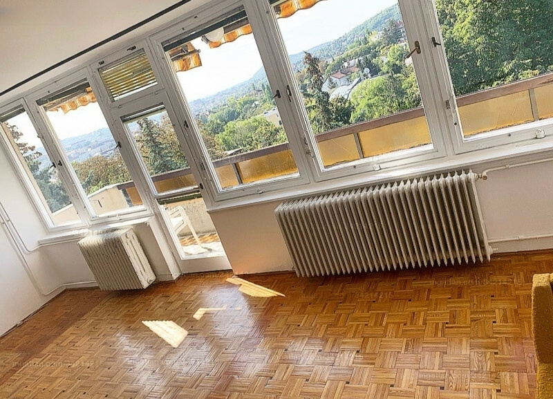 The 1960s building, in average condition, sits on a large plot at the corner of Bimbó Road and Kapor Street. The apartment is located on the third (top) floor and easily accessible, making it suitable for families and seniors.