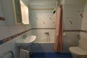 The apartment features insulated windows equipped with blinds and mosquito nets. Entering through the security door, you arrive in a spacious hallway, from which you can access the bathroom with bathtub (5 sqm), the living room overlooking the park (19 sqm), and a pantry. At the end of the hallway, you'll find the bright, windowed kitchen (6.6 sqm), which can easily be converted into a bedroom if desired.