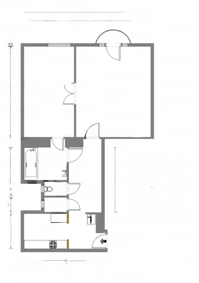 This two-room apartment is partly renovated and in moderate condition, suitable for both living and investment purposes.
