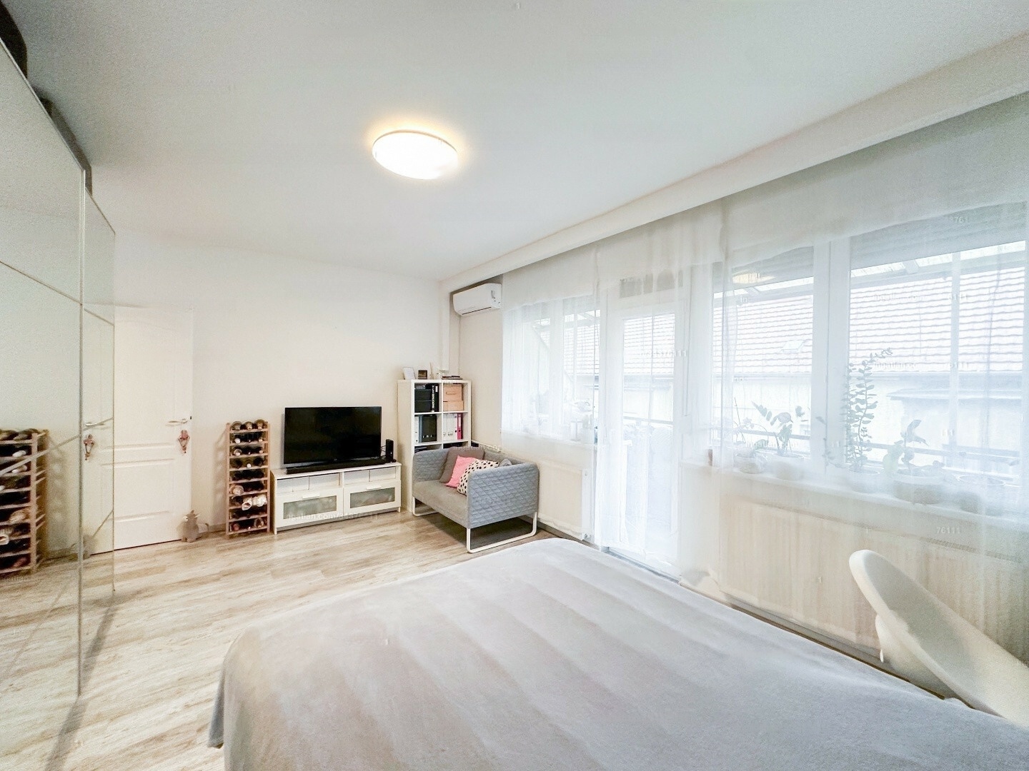 A newly renovated 29 m² (+ 6 m² loggia) brick apartment with central heating is available on the 5th floor of a well-maintained building with an elevator, located at the foot of Kissvábhegy. The apartment is bright with a southwest orientation and has a quiet, friendly neighborhood.