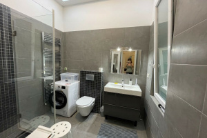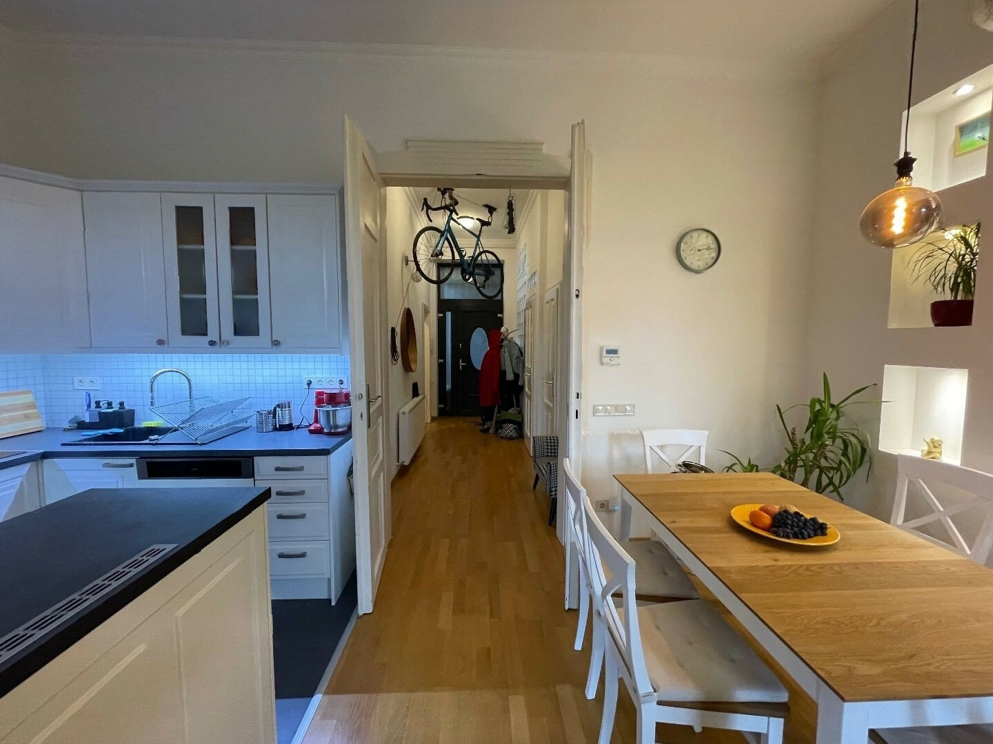 This renovated apartment is in excellent condition, spacious, bright, and particularly quiet. The transportation links are outstanding, with buses (105/210) and trams (61/17) within a 7-minute walk, and Déli Railway Station just 15 minutes away.