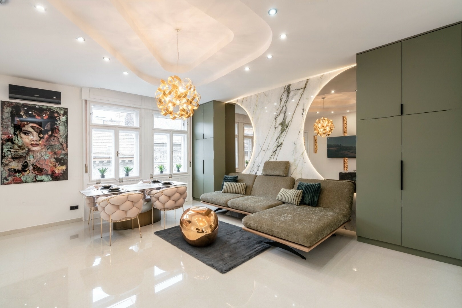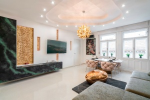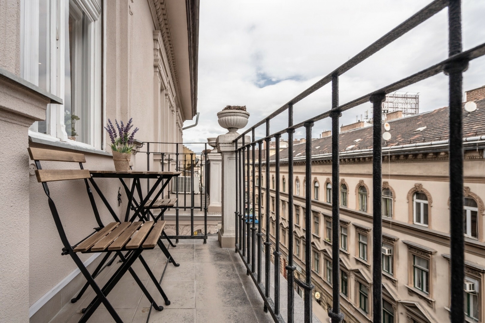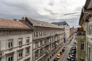 A fully renovated, high-floor luxury apartment is for sale in the 5th district, with a balcony offering views of the Citadel. The building's façade is in excellent condition, and its interior spaces have recently been renovated.