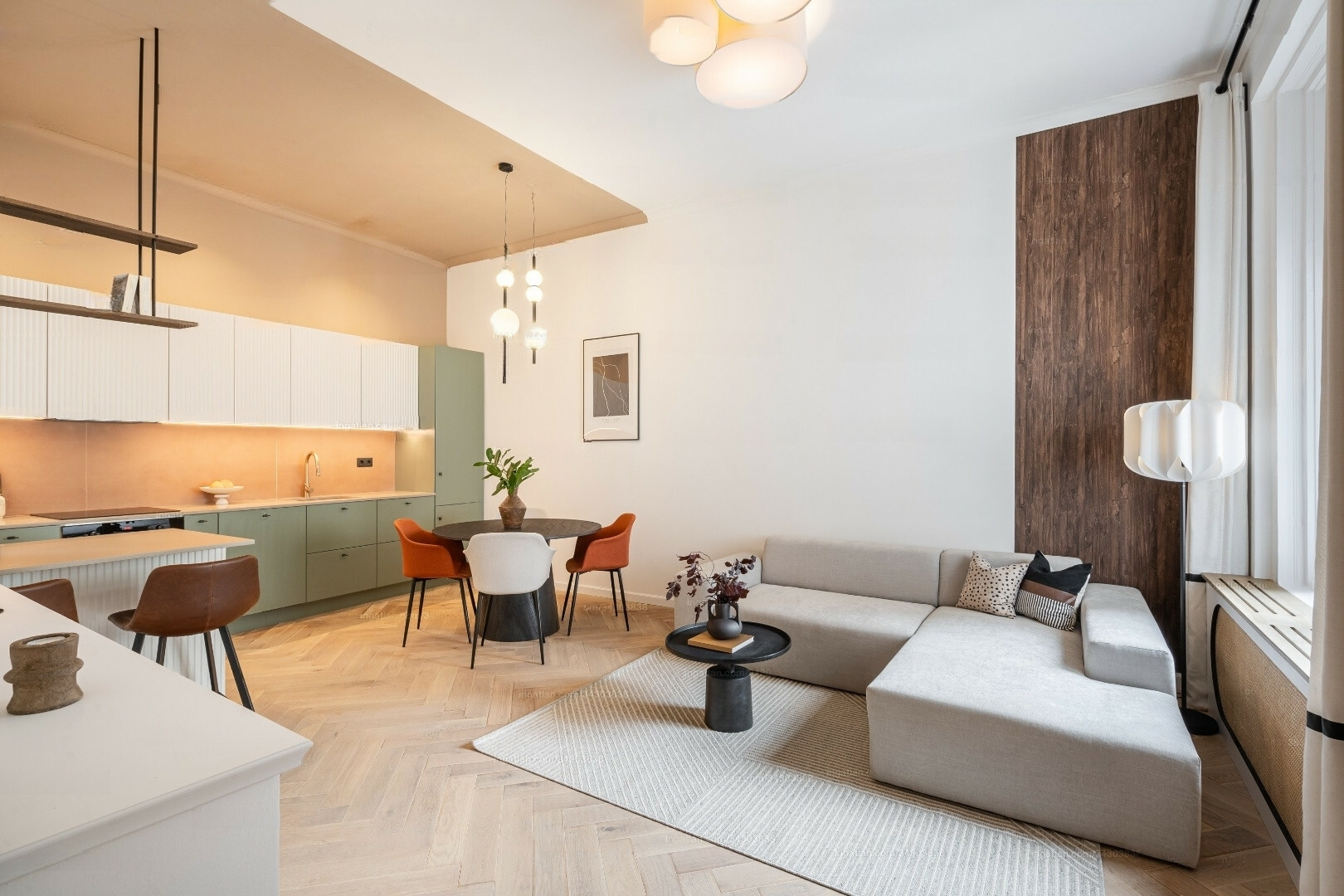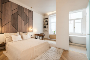 Lyxrör inkluderar Borovi Pine Windows, ekparkettgolv, Bosch-hushållsapparater, ett larmsystem, elektriska fönsterluckor och skräddarsydda möbler.